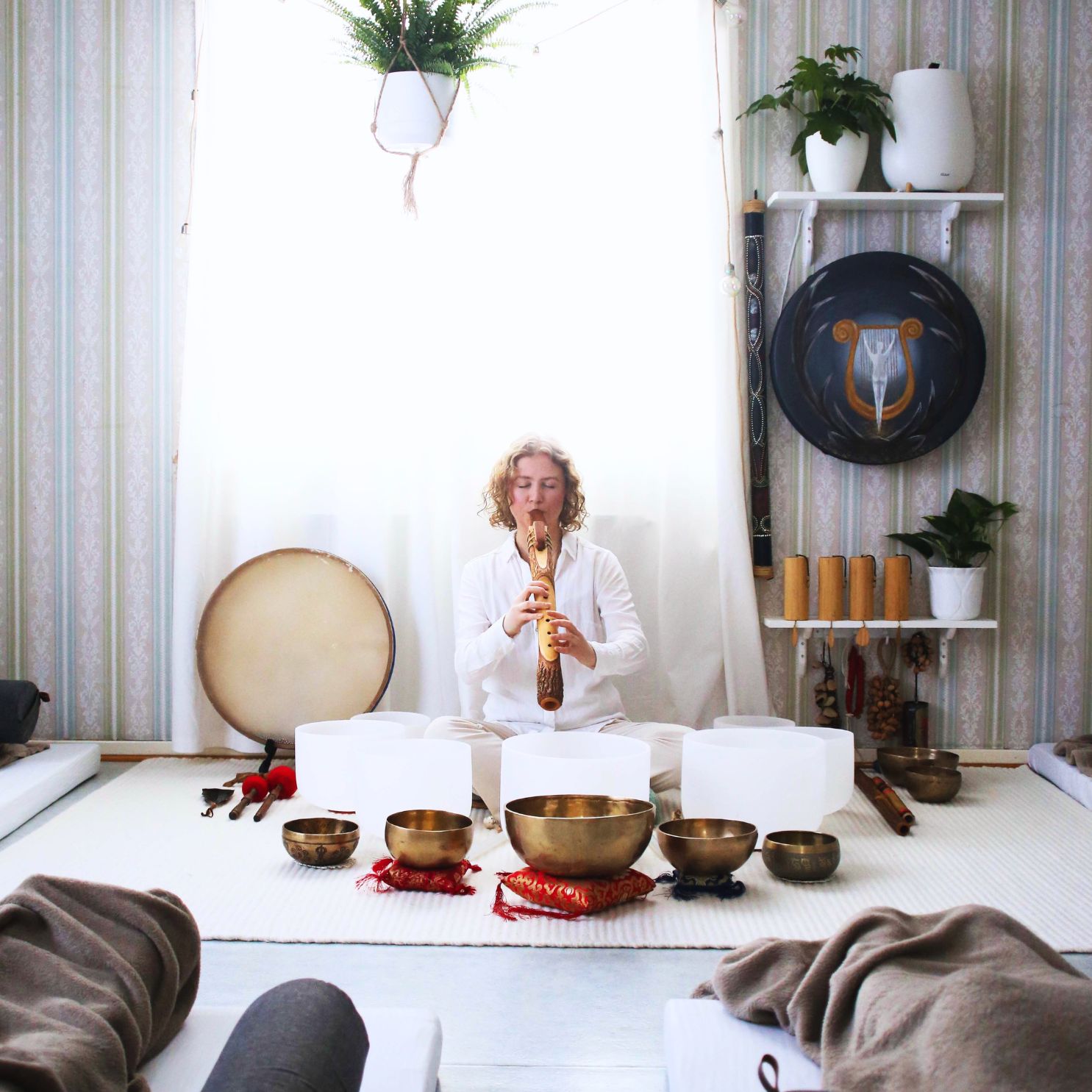 I hold diplomas in Sound Healing Facilitation, Mindfulness, and Reiki Healing. My specialty is what I like to call “energy singing”. It is a way for me (and you) to channel healing frequencies and transform energies with the powerful voice. Apart from that, I also use many other tools— shaman drums, chimes, healing bowls, rattles, and also traditional vocal practices such as kulning, shamanic chanting, and jojk.